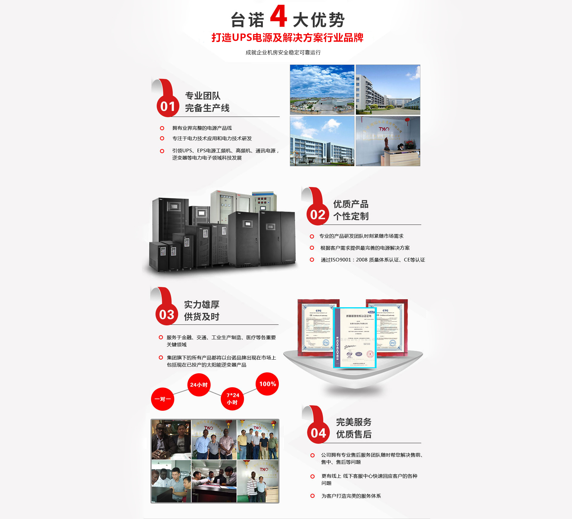 東莞市臺(tái)諾電子有限公司是一家以新能源、UPS不間斷電源、EPS應(yīng)急電源、交直流穩(wěn)壓電源、鉛酸免維護(hù)蓄電池、智能變頻電源、智能開(kāi)關(guān)電源、智能一體化逆變電源、智能電源監(jiān)控系統(tǒng)的研究、開(kāi)發(fā)、生產(chǎn)、經(jīng)營(yíng)、銷(xiāo)售及技術(shù)推廣等多行業(yè)發(fā)展高新企業(yè)。公司位于東莞市毗鄰中國(guó)南方經(jīng)濟(jì)重地廣州、深圳,交通發(fā)達(dá),信息暢通。系廣東重點(diǎn)高新技術(shù)企業(yè)、東莞市創(chuàng)新型企業(yè)、也是中國(guó)電源協(xié)會(huì)、廣東省材料與器件產(chǎn)業(yè)技術(shù)創(chuàng)新戰(zhàn)略聯(lián)盟、 東莞市臺(tái)諾電子有限公司隸屬于臺(tái)諾集團(tuán),是一家有多年UPS集設(shè)計(jì)研發(fā)、生產(chǎn)銷(xiāo)售、售后服務(wù)為一體的公司,擁有業(yè)界完整的電源產(chǎn)品線(xiàn),專(zhuān)注于電力技術(shù)應(yīng)用和電力技術(shù)研發(fā)。公司致力于向全球客戶(hù)提供性能好、品質(zhì)好的產(chǎn)品與服務(wù)。UPS、EPS電源工頻機(jī)、高頻機(jī)、通訊電源、光伏、逆變器等電力電子領(lǐng)域科技發(fā)展,創(chuàng)造可靠、節(jié)能的產(chǎn)品,致力于為客戶(hù)提供完善的電源解決方案。產(chǎn)品廣泛應(yīng)用于政府、金融、通信、教育、交通、氣象、廣播電視、工商...